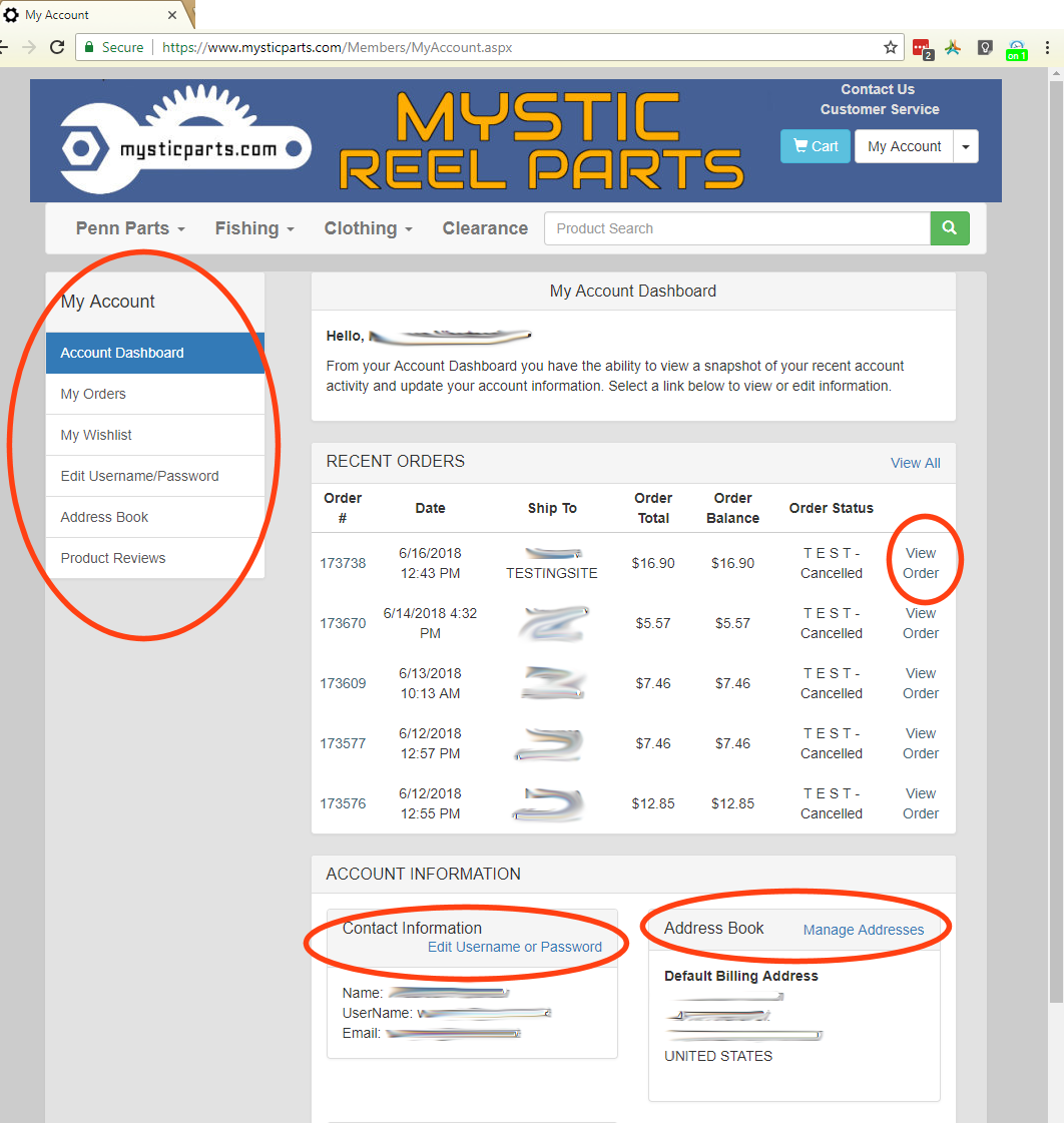 You can access your orders in two ways. One is directly from the My Account Dashboard, simply by clicking on the "View Order" link on each order's entry row.