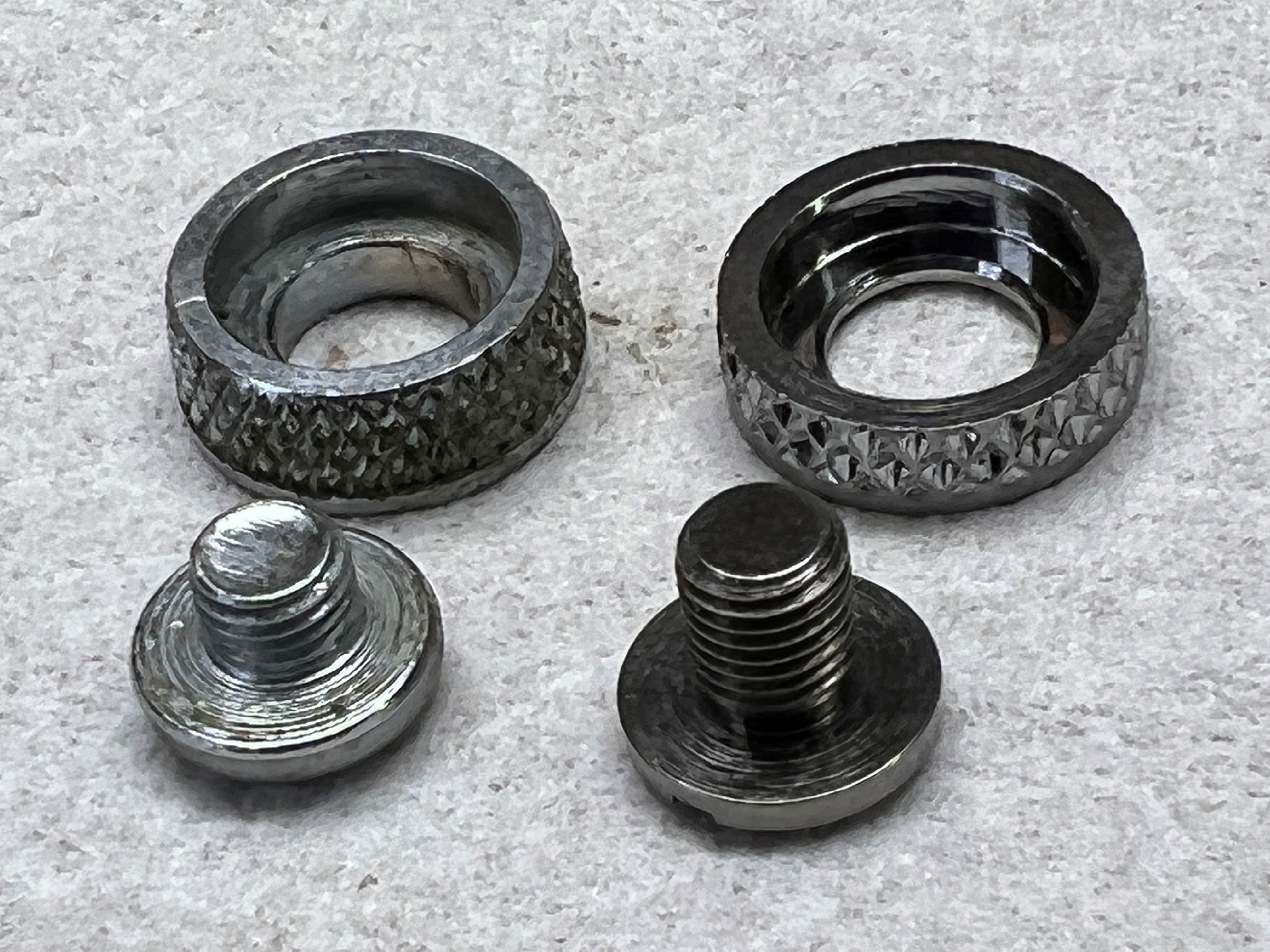 The older/thicker eccentric collars fit the original plastic knobs.