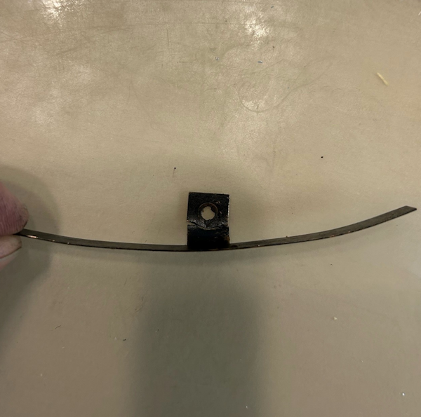 This strike plate was screwed into the handle side plate on the early International reels. It appears that the strike buttons would hit on it or it was just meant to help keep them in place.