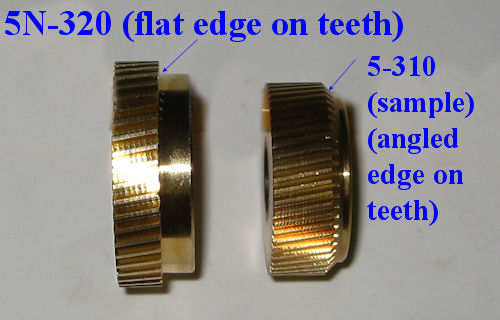 On the newer style 5N-320 main gear, the teeth are all one straight edge. On the original 5-320 main gear, the end of the teeth has a edge tapered at an angle. Photo sample below using a 5-310 gear since it has the same style edge as the original 5-320 gear.