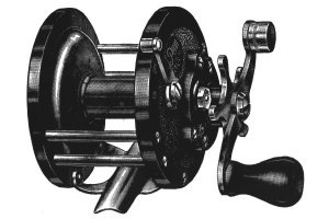 190 Bay-Star reel (NOT a Seaboy) - Ideal reel for light tackle bay fishing. Capacity 100 years #9 Line. Reel seat fits fresh and salt water rods. the spiral cut gears are triple multiplying for speedy action. Free spool clutch is operated by a snap lever on rim. Spool end play can be taken up by an adjustable bearing. A sliding click provides for arresting spool. Reel can be lubricated from the outside. Metal Parts are nickel-plated. The small streamlined end plates are beautifully engraved and 2 ¾" in diameter. (1950 Penn Catalog)